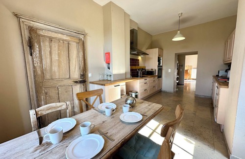 This gîte was renovated and refurbished in 2013 to offer modern facilities while retaining the original character of the building in terms of materials and general atmosphere. An ideal gîte for a family break! It has a large living room with a wood-burning stove and comfortable armchairs, a spacious dining room, a modern, fully-equipped kitchen, a large entrance hall, a single bedroom on the ground floor, four bedrooms upstairs, three bathrooms and a beautiful games room on the mezzanine
