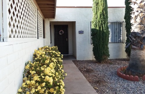 Our home is a very spacious and nicely decorated 2 bedroom, 2 bath townhome with 4 beds (king, 2 twin beds - (trundle), queen sofa bed, and porta crib) that accommodate 6 people, plus infant. 1520 sq. ft.and furnished with everything you need. It is located close to main stores in Sierra Vista. It has wifi, washer, dryer, dishwasher, 2 cable (smart) TVs with Netflix and a backyard with patio furniture.
