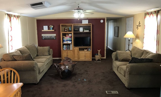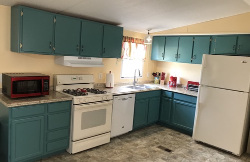 The kitchen is ready for you with basic cooking and eating utensils. If you need a microwave, coffee pot, skillet, blender, toaster, plates, forks, spoons or knives, we have got you covered. In the living room you'll find comfy couches, a smart TV, DVDs, board games and a few classic books. The game room will help fill the later hours with foosball, Wii, air hockey and a children's "dart board".
