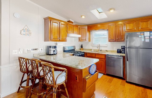Head back after you've had your fill of the day and walk in through the front door to find a lovely and humble living area, complete with comfortable furnishings that provide plenty of space for you and your friends. Step into the full kitchen and whip up a hearty meal for everyone around dinner time using the appliances provided, then sit down at the bar area and feast to your heart's content. Enjoy the convenience of the community center and pool—just a short walk away from the unit. Also available on-site are the multiple tennis courts, the volleyball court, the basketball court, the playground, and the clubhouse with an arcade, Ping-Pong, and many other things! Be sure to bring your fishing rod and head out to the fishing and crabbing pier as well. Kick it up on a sunny day out on the patio area with a cold beer in hand, then head in around nighttime and stream one of your favorite movies as you snack on some popcorn.