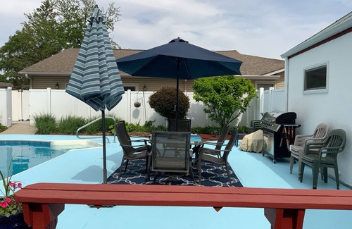 Escape to this suite some have described as their "private spa." in picturesque Beloit. This charming rental offers all the essentials for a pleasant stay as it is the ONLY one in the area with a comfy King bed, Exclusive Private bathroom with walk-in shower, access to heated pool, and amenities such as a separate Private reading/work room, coffee maker, microwave and mini-frig. This is perfect for anyone visiting friends, passing through, or extended work stay! Conveniently close 2 min. from Beloit Hospital, Grocery Store, Drug/Convenience Stores, restaurants, bike/hiking paths along the scenic Rock River, Beloit College and Downtown activities. It includes an iron, ironing board, and a hair dryer. With a cozy bathroom, guests can freshen up before exploring the city or attending their special event. With a 5 star rating and glowing reviews, we know you'll enjoy your stay at our master suite.