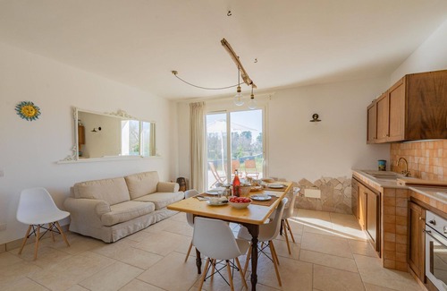 inside, the house consists of a bright and comfortable well-equipped kitchen, a hallway divides the two double bedrooms and the bathroom with shower. Equipped with air conditioning in every room, TV, wi-fi, washing machine. It can accommodate up to 4 people.