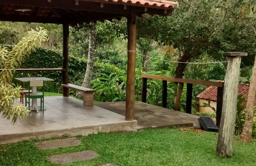 The House is well ventilated, cozy and large with more than 250 m2 of built area, ideal for rest and enjoy nature. It offers 4 bedrooms, one external suite, all rooms with ceiling fan and a mezzanine that can be transformed into a fifth. bedroom, the house sleeps up to 10 people, kitchen with all basic utensils refrigerator, microwave - blender - sandwich maker and electric pan, 4 bathrooms, barbecue and garage for 3 small cars.