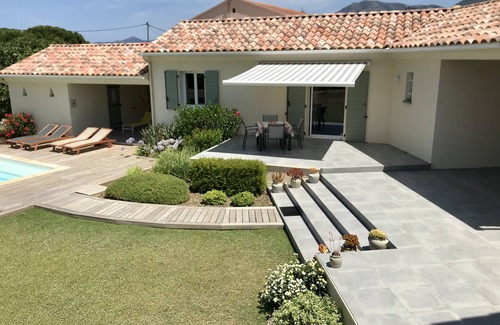 Comfortable independent apartment in seaside villa with swimming pool is located in Saint-Florent. Comfortable independent apartment in seaside villa with swimming pool provides accommodation, featuring TV, Security/Safety, Entertainment, among other amenities. This Apartment features TV, Security/Safety, Entertainment, to make your stay a comfortable one.