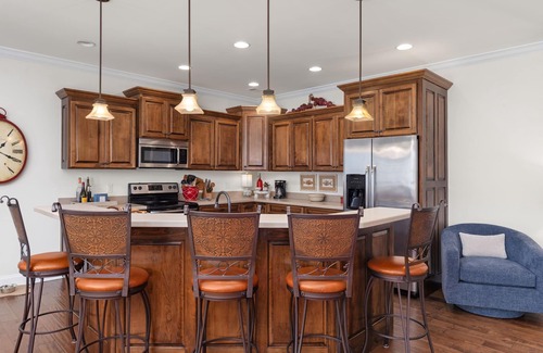 - Open concept floor plan with a spacious, well-stocked kitchen