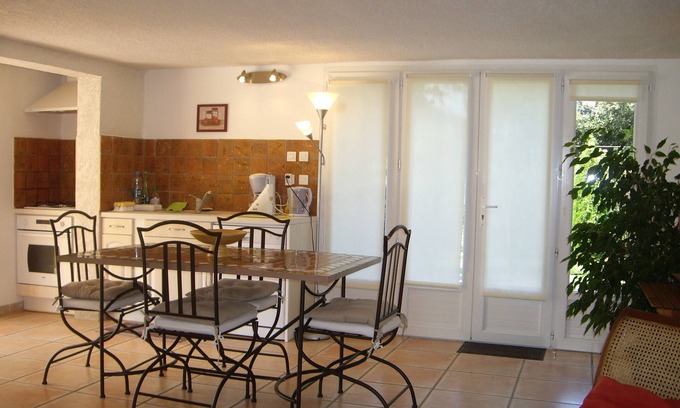 The rental is located near that of the owner, on the ground floor of a small residence, surrounded by a large park with trees on the owners' land, in a small calm and peaceful village - In the countryside facing the vineyards - close to the sea - shops - its church - With outdoor swimming pool.