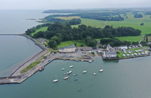 Explore the beauty of the Dumfries and Galloway coastline. Stroll along the sandy Garlieston Beach, just a few steps away. Embark on scenic cycling routes, try your hand at fishing, or explore the captivating Galloway Hills with invigorating hikes. Don't miss the opportunity to visit the nearby historic village of Whithorn, Scotland's oldest Christian settlement. Nearby are the Bladnoch and Crafty Distilleries. Within the village, you'll find the welcoming Harbour Inn Pub, serving lunches and dinners. There's also The Hive café, offering delicious lunches, homemade cakes, locally made ice cream, and a variety of teas and coffees.