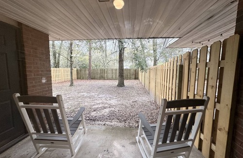 Enjoy the entire home. Back yard is fully fenced providing a nice private area to let Fido run or enjoy the rocking chairs during cooler temperatures.