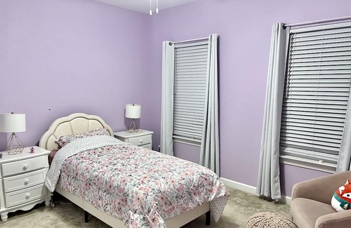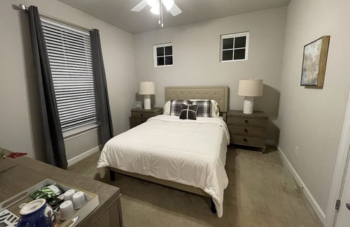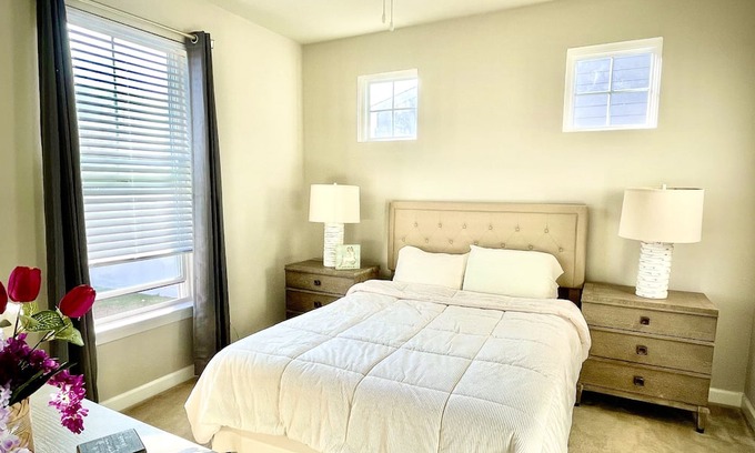 I live in this home with my daughter, dog, and cat and there are 4 rooms that can be rented daily, weekly, or monthly. I do live upstairs and your are welcome to use the dining and kitchen area. The downstairs guest room has its bathroom right out the hall. The king bedroom is a dream loud bed and has the largest room area. There is a foldable matress that can be used for kids. There is a queen bedroom with a soft nectar bed . Desk and office space can be made available . There is a TV and Wi-Fi. There is a washing machine and dryer upstairs. You can use the driveway and park there for free.