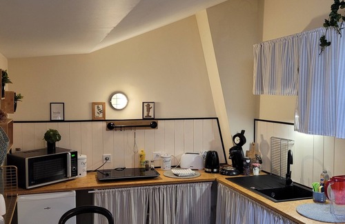 Prepare a home-cooked meal in the kitchenette, complete with a stovetop and a refrigerator, as well as a coffee maker, an electric kettle, and a microwave. Connect to the free WiFi, or get cozy in front of the TV. Bathroom amenities include a hair dryer, towels, and toilet paper. And thanks to the washer and dryer, you'll even be able to travel light. Other amenities at this 1-bedroom, 1-bathroom rental include bed sheets, heating, and a dining table.