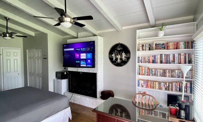 In the center of Moses Lake, you'll find a charming little studio that feels like your own home. As you step inside, you'll be greeted by a small kitchen area complete with a refrigerator, microwave and coffee pot allowing you to brew some fresh coffee or heat up a meal. Unwind in the comfort of air-conditioned space, with linens provided for your convenience. Stay connected with the complimentary WiFi, and take advantage of the desk, big TV and chair setup, perfect for getting some work done. Whether you're seeking a relaxing getaway or a productive work-from-home experience, this studio has everything you need for an unforgettable stay. This studio is the attached ADU of the main house.