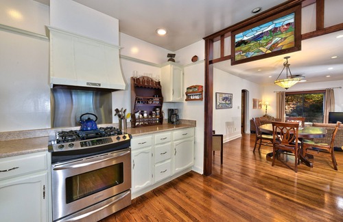 Our formal dining area seats six easily with immediate access to the shady backyard. The Kitchen is fully equipped and has stainless steel appliances including an induction range, dishwasher, refrigerator.