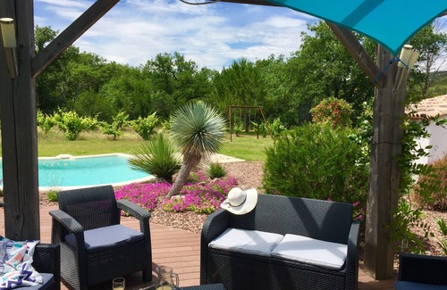Beautiful villa with swimming pool set in a landscaped garden, with a large plancha for grilling, a trampoline with safety net and swings for children, between vineyards and scrubland.