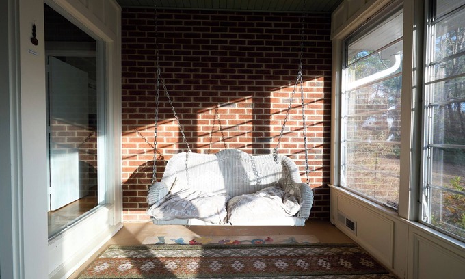 Escape to a serene 3-bedroom near Benvenue Golf Course. Relax on the sun porch swing with a pond view. Ideal for families and long term corporate stays. The gorgeous sun porch with a large swing is the ideal place to start your day with a cup of coffee or wind down with a good book. As you swing gently, soak in the views of the serene water.