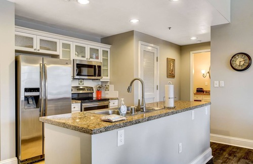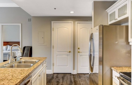 This modern 2 bedroom, 1 3/4 bath condo is located in the heart of Montelago Village. It is conveniently located on the lobby level and overlooks two beautiful pools and courtyard. The fully equipped kitchen has seating for six. There is one king bedroom, one queen bedroom, and a queen sofa sleeper in the living room to accommodate sleeping for six guests. A combination washer/dryer is also included for your convenience. Please let me know if your preferred dates are not available as we also own another property in Viera that may be able to accommodate you.