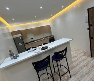 Comforts is located in Tangier, just 2.2 miles from Dar el Makhzen and 2.3 miles from Kasbah Museum. The property is around 1.4 miles from Tangier Municipal Beach, 1.8 miles from Tanger City Mall, and 2 miles from American Legation Museum. The apartment also offers free Wifi and free private parking. The apartment is composed of 2 bedrooms, a fully equipped kitchen, and 1 bathroom. A flat-screen TV is offered. The accommodation is non-smoking. Forbes Museum of Tangier is 2.5 miles from the apartment, while Ibn Batouta Stadium is 4.3 miles from the property. The nearest airport is Tangier Ibn Battuta Airport, 6.8 miles from Comforts.