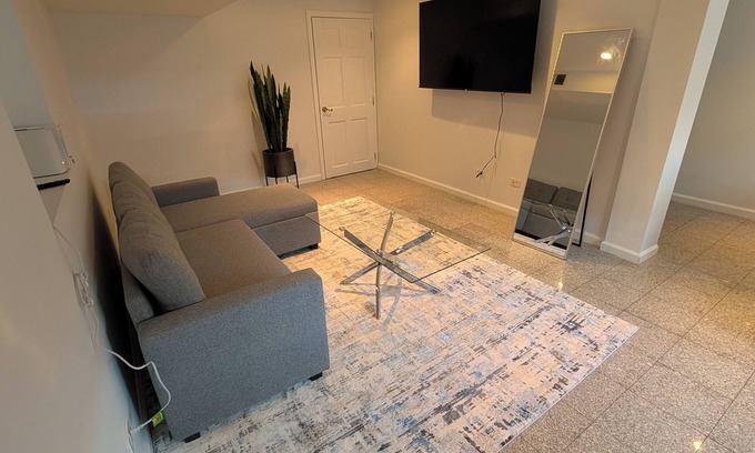 Nestled in Oak Park, this delightful apartment is a brilliant choice for guests seeking a cozy retreat. With 2 bedrooms offering a queen bed, a crib, and a full bed, everyone will have a comfortable place to rest. The bathroom comes equipped with a hair dryer for added convenience. The living room provides an additional space with a sofa bed for extra sleeping arrangements. Whether you're exploring the city or simply relaxing indoors, this wonderful apartment has everything you need for a memorable stay. We hope you'll enjoy your stay at our apartment.
