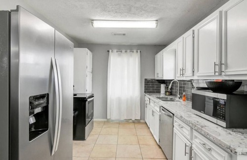 Welcome to your perfect retreat in Bridge City, Texas! This inviting short-term rental offers everything you need for a memorable stay. With 3 bedrooms and 1 bath, it's the ideal home base for your adventures. Step inside and discover a fully stocked kitchen, ready to fulfill your culinary desires. The spacious living room welcomes you with smart TVs that invite you to unwind after a day of exploration. Each bedroom is equipped with its own smart TV too, offering personalized entertainment options. Outside, a fenced yard awaits, providing a secure space for outdoor activities and relaxation. Situated on a quiet dead-end street, tranquility is guaranteed, allowing you to rejuvenate and recharge. Worried about packing? Don't be! Linens and towels are provided, lightening your luggage load. And for those who value staying connected, high-speed internet ensures you're never far from the digital world. For the grill masters, a gas barbeque pit is at your service, ready for you to showcase your culinary skills. Whether you're grilling up a feast or simply enjoying the outdoors, this feature adds an extra layer of enjoyment to your stay. Whether you're here for work or leisure, this 3-bedroom, 1-bath rental is your haven. Bridge City's charm and convenience await you, and this accommodation ensures you experience it all in comfort and style. Book your stay now and unlock the door to your Bridge City adventure.