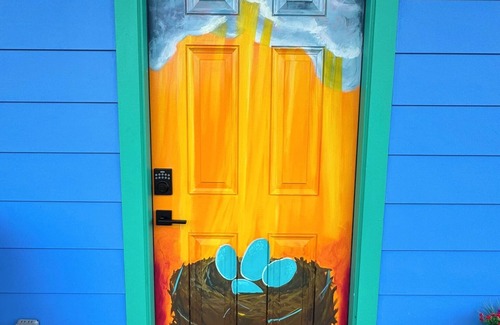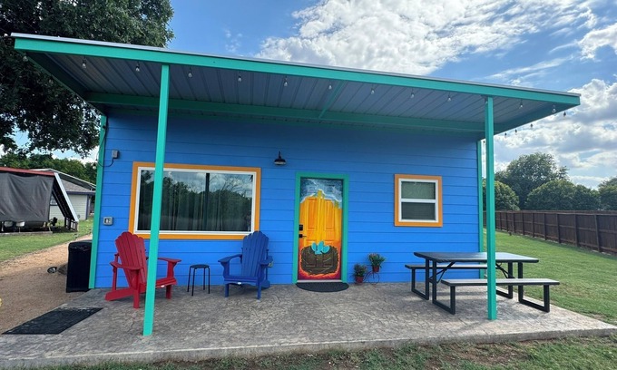 The Glory Nest is the newest addition (built 2024) to Olliewoods Oasis - a mix and match of colorful and eclectic sleeping options that make the setting outta sight and totally fab! The property is 2.5 acres and is adjacent to 180 acre Crescent Bend Nature Park. The owners' home is on the front side of the property and the three sites (Buffalo Knights, Ruby Any Day and The Glory Nest) are located on the back/park side of the property with a path provided directly into the park. The owners share their pool with guests and the property also has a 30x30 covered pavilion, covered pickleball court, volleyball court, outdoor hot water shower and a separate bathroom/shower house (Groovy Go Go) for all guests to use. For additional family fun, board games, movies and outdoor yard games are provided along with pickleball paddles to try the fastest growing sport in America!