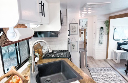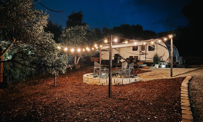 Located in the hills of San Luis Rey Heights of Fallbrook, this Farmhouse Chic on wheels remodel will give you the true feeling of Glamping . Nestled on your own fenced in 8,000 sq. ft. spacious lot with a private, gated entrance sits the Comfy+Cozy Camper surrounded by avocado and orange trees. 30 mins to Temecula Wineries and the Oceanside Pier.