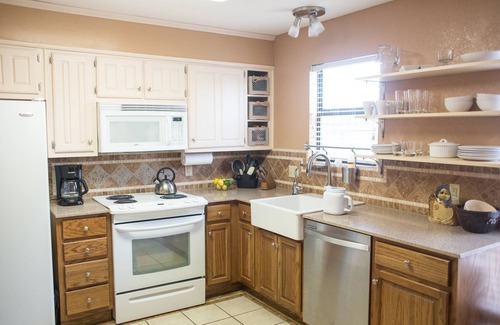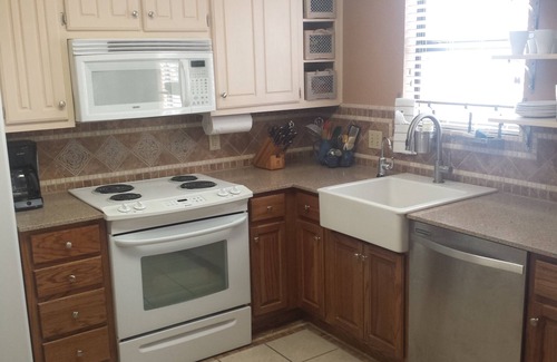 Our cozy, convenient, comfortable condo is located in the Baylor Bubble and provides all the comforts of home with the convenience of location for couples, families, and groups who want to enjoy the sites of Waco. Located within walking distance of Baylor University and the popular Common Grounds, you can relax within the security of a gated courtyard and a gated private patio. A gas grill is provided with plenty of propane for your grilling pleasure. There is a large screen television with cable and high-speed internet service. Enjoy cooking healthy, tasty, and economical meals in the newly remodeled full kitchen with a reverse osmosis water filter for pure healthier and tastier drinking water. A full-sized washer and dryer are also provided for your convenience.