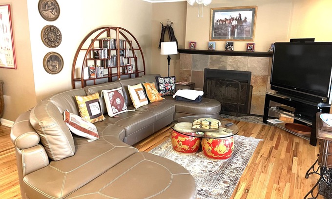 One bedroom is furnished with a king size bed and the other has a full size bed along with a desk. Both have plenty of furniture and closet space to store your clothes during the stay. There is a queen-sized air mattress that can be used for additional sleeping, along with a single size air mattress, and the couch in the family room is very comfortable. The house also contains a pack-n-play and stroller.