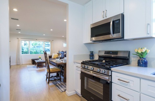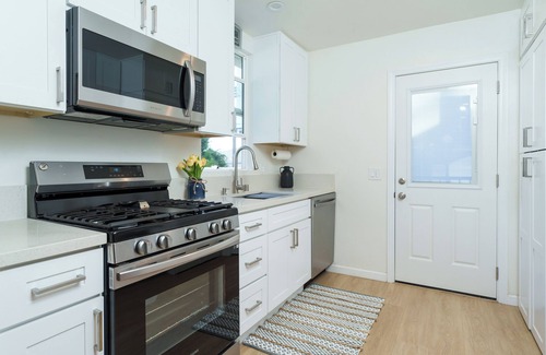 This charming 2-bedroom, 1-bathroom house is your haven for tranquil, comfortable living. Sink into your comfortable sofa and watch Netflix on your TV. A well-equipped kitchen caters to your culinary needs with high end stainless steel appliances. Surprise your family with a new recipe you learned and gather around your dining table for a warm dinner night.