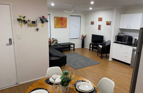 Newly built small house 2 bedrooms with Private Parking for 2 cars, Private entrance, Private driveway, locked gate, Free Wi-Fi, quite little Garden, Air Conditioned, sleeps 4 guests, fully equipped Kitchen, walking distance to local shops and bus stop, 5 mins drive to train station & M4 & M7, 45 mins to Sydney Airport & the CBD, 20 mins to the Blue Mountains & 15 mins to Sydney Motorsport Park.