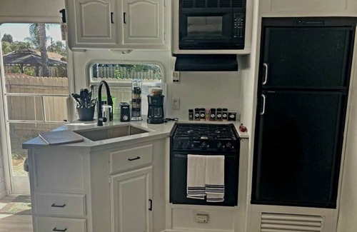 This is a comfortable, clean and well equipped cozy RV epitomize camping, We have a peaceful backyard to relax and feel laid-back. Guests enjoy easy access to San Diego's best beaches, restaurants, shops and many more.