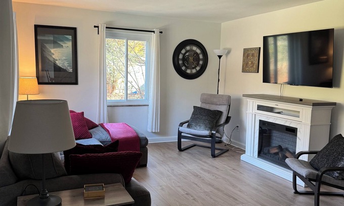 Enjoy the AC or a warming fireplace (electric), high-speed WiFi with streaming capability from your account. Two bedrooms have TVs.