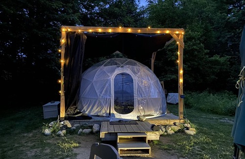 Situated on a cozy little hill, you'll be elevated above all the other domes, affording you a "royal" view of the landscape! With a clear view of the sprawling fields, you'll frequently be the first to spot the family of deer that visit ComfyDome. Your heart will be filled with joy at the sight of the newborn fawns walking through the grass. You'll be surrounded by stunning natural beauty on all sides and will have ample open space to enjoy your site in comfort!