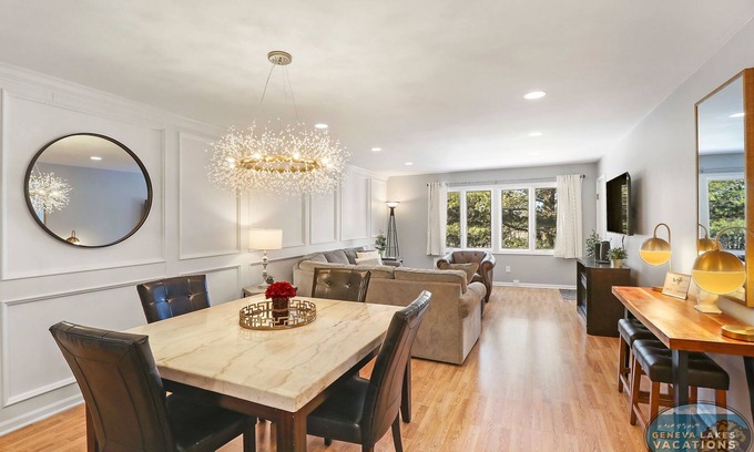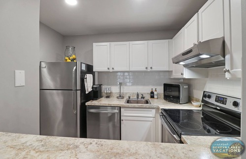 Wake up to peaceful mornings with coffee on your private balcony, and wind down in the stylish living room, complete with a comfy sectional for movie nights. Whether you're attending a wedding at the nearby Lodge Geneva National or exploring Downtown Lake Geneva, this centrally located condo puts you close to everything—from shopping and dining to nightlife and outdoor fun. This unit provides a great location for a ski trip at Grand Geneva or Alpine Valley, and is just a short drive from Delavan, Williams Bay, and Fontana, offering even more opportunities for lakeside adventures.
