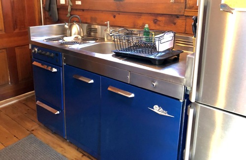 The two cozy bedrooms are also tongue and groove pine paneled; one with a queen bed, the other with a twin bed. The comfy nook in the sunroom, with antique daybed equipped with custom mattress and box spring, is a wonderful spot to curl up with a good book, or to sleep the night away.