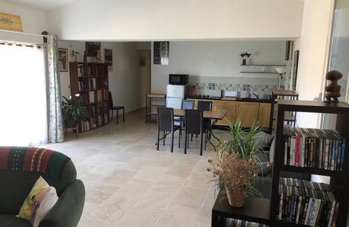 First spacious floor of a peaceful Provencal farmhouse, overlooking the countryside and the ponds. Close to all amenities, you can reach all the major cities of Provence in 30 minutes maximum.