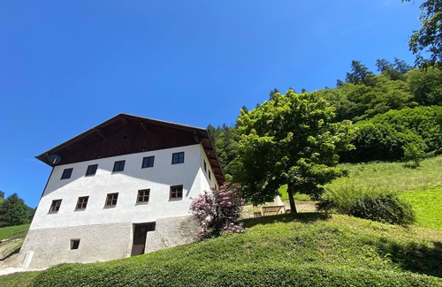The renovated 250 year old farmhouse is located in Kleinstockach, a small mountain village at 1,150 m above sea level, in Tyrol, Austria.