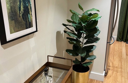70-inch wall-mounted TV in living room and one in both bedrooms - includes cable & HBO. High-speed WIFI. Amazing cedar deck overlooking sideyard is the perfect place for morning coffee or to rest and unwind after a long day. Central location and a quick Uber ride to any city venue and both airports.