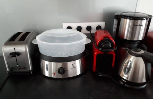Fitted kitchen (3 induction hobs - electric oven - microwave - fridge - freezer - dishwasher - dryer - washing machine - electric coffee maker - toaster - electric kettle, steamer ....).