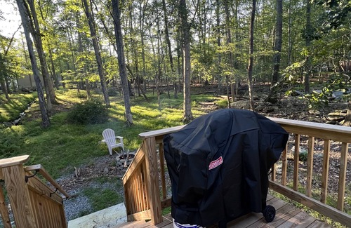 3 Bedroom 2 Bathroom. Fully renovated. Spacious woodland garden, two decks, and plenty of parking. A gas barbeque is on the deck, and a fire pit is in the garden. New; working desk and chair, in combination with our excellent WIFI the perfect place for "hybrid" guests that need to work!