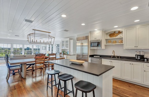 Featuring a modern chef's kitchen outfitted with top-of-the-line Wolf and Sub-Zero appliances, you can prepare meals that will delight your guests. Enjoy seamless indoor-outdoor living with open-concept spaces that flow into a large backyard oasis complete with a heated pool, lounge chairs, and a Weber Genesis gas grill—ideal for outdoor entertaining. The property also includes ample conveniences such as dual washer/dryers, complimentary linens, beach gear rental credits, and parking for up to four vehicles. With your comfort in mind, the home provides everything you need for a stress-free wedding weekend.