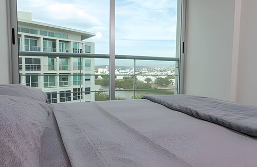Disfruta de un alojamiento con seguridad 24/7, estacionamiento privado, áreas verdes, alberca y áreas comunes, acceso al rio y al parque. El departamento cuenta con una vista a la alberca inigualable.