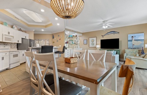 This spacious light and airy two bedroom condo features floor to ceiling views with a private balcony. Unwind on your private balcony with a cocktail at sunset over the bay. Relax in the comfortable living space with sleeper sofa after a day on the water. The open concept well-equipped kitchen is stocked with pots/pans/utensils to whip up a family meal. Enjoy a family meal around the dining table, comfortably sits six or dine out on your private balcony table which also seats up to six. There is a washer and dryer in the unit for your convenience.