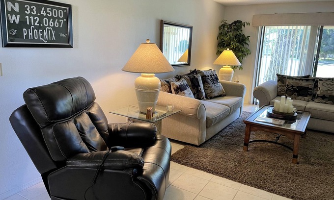 Condo right on the golf course in a 55+ community in sunny Mesa! has 2 Bedrooms , 2 Bathrooms, and max occupancy of 4 people. The minimum rental for this property is 1 nights, but this can change depending on the season you plan on staying. Previous guests have given good rated it, and VRBO labeled it a top-rated Condo because of the excellent services rendered by the owner or manager of this Condo, and has consistently provided great experiences for their guests. Most families or guests that use it recommend it to their friends and some of them are repeat guests. Condo has a friendly neighborhood, and the Fountain of the Sun has interesting places to visit. If you want to learn more about the Condo in Fountain of the Sun, such as places to visit and things to do nearby, you can check below to learn more.