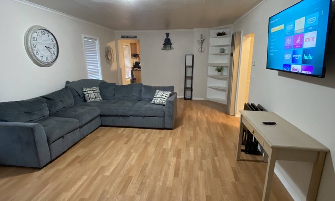 The bathroom is newly remodeled and is GORGEOUS! The fan has a built in bluetooth speaker so you can jam out while you're in there! Heaters and A/C are in every room. Each room also has smart TV's with Netflix, Disney+, and Hulu+TV. sports channels, kids channels and many more options.