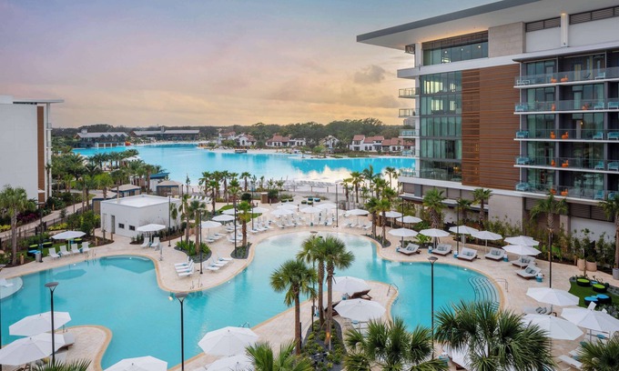 Indulge in top-notch amenities at Conrad Orlando, where every detail is catered to perfection. The property boasts 433 spacious accommodations, each featuring separate sitting areas, minibars, and espresso makers to help you unwind. Pamper yourself at the full-service spa or dive into relaxation at the outdoor pool complete with a children's section and waterslide. With five outstanding restaurants on-site, culinary delights await, ensuring that your wedding reception and pre-wedding gatherings are as spectacular as your ceremony.