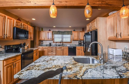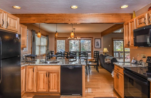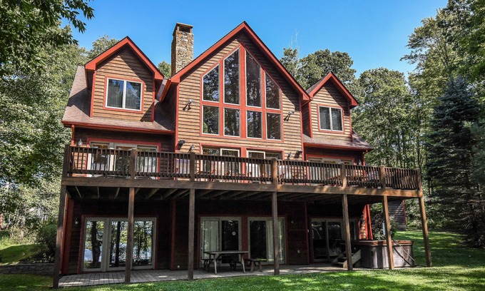 Take the fun outdoors and play horseshoes, roast hot dogs at the fire pit, soak in the bubbling hot tub, or take a short stroll down the level lawn to the lakefront and your own dock slip. Constantly Cozy is spectacular mountain chalet that will make you constantly want to come back time and again.