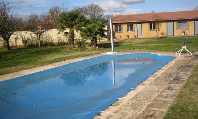 House in a village of 929 inhabitants 14 km. from León capital. It has all the necessary comforts, it is cozy, completely restored 10 years ago, it combines its adobe structure to be cool in summer but with modern materials that gives it a special appeal. Although the rent is from the house alone, the owners will allow them to share with their family the beautiful porch outside the house, the pool and the estate of almost 3000 meters. without any additional cost.