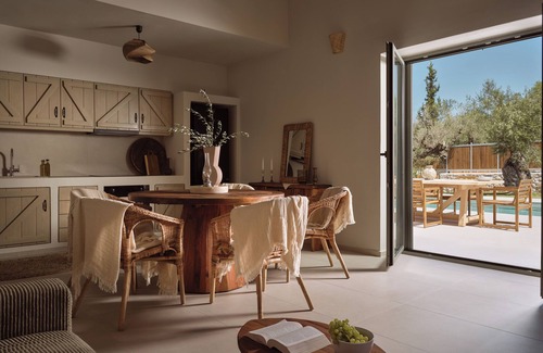 Nestled among a hundred-year-old olive grove and bathed in sunlight, this estate offers a unique blend of rustic charm and modern comfort. Built with natural stone and wood, each house honours the island’s architectural heritage while providing a peaceful retreat.