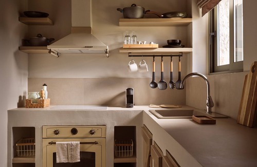 Nestled among a hundred-year-old olive grove and bathed in sunlight, this estate offers a unique blend of rustic charm and modern comfort. Built with natural stone and wood, each house honours the island’s architectural heritage while providing a peaceful retreat.