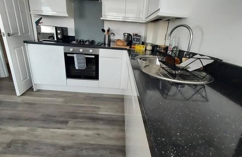 The flat has gas fired central heating and comprises a generous and social kitchen/diner/lounge which has a large corner sofa bed, dining table to seat up to six and TV unit. Free ultrafast broadband/WiFi is available as well as Sky Glass TV offering all of the usual free view channels plus assorted Sky channels, Apps and catch-up facility. There is also an Echo Dot to provide music and hopefully answer any questions!