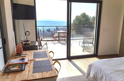 Contemporary bioclimatic villa with pool in the Var is located in Montauroux. Contemporary bioclimatic villa with pool in the Var provides accommodation, featuring TV, Ocean View, Balcony/Terrace, among other amenities. This Bed & Breakfast features TV, Ocean View, Balcony/Terrace, to make your stay a comfortable one.